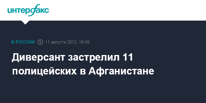 Кабул. 11 августа. INTERFAX.RU - Полицейский, скорее всего, являвшийся агентом движения "Талибан", застрелил 11 своих коллег в провинции Нимроз на юго-западе Афганистана, сообщили в субботу местные власти. Преступник был убит ответным огнем сотрудников полиции.