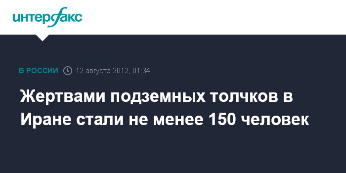 Лондон. 12 августа. ИНТЕРФАКС - По последним данным иранских властей, по меньшей мере 150 человек погибли в результате двух землетрясений, произошедших в субботу на северо-западе Ирана близ города Тебриз, передает британская телерадиовещательная корпорация Би-би-си.
