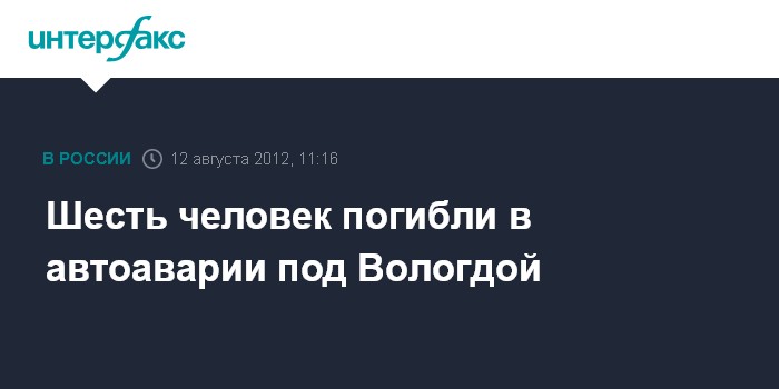 "Авария произошла на трассе Вологда - Новая Ладога в воскресенье в 01:15 мск. От ЕДДС Чагодощенского района поступило сообщение, что на 306-м километре трассы вблизи населенного пункта Сазоново произошло ДТП с участием автомобиля ВАЗ-2112 и минивэна "Додж". В результате ДТП 6 человек погибли", - говорится в сообщении.