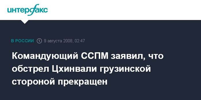 Командующий ССПМ заявил, что обстрел Цхинвали грузинской стороной прекращен