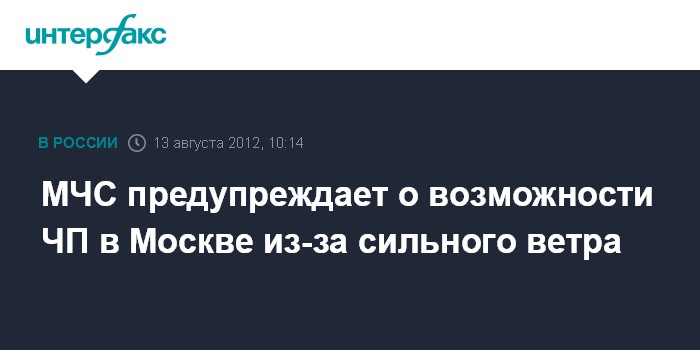 Москва. 13 августа. INTERFAX.RU - Сильный порывистый ветер ожидается в Москве в понедельник, сообщили "Интерфаксу" в пресс-службе ГУ МЧС России по столице.