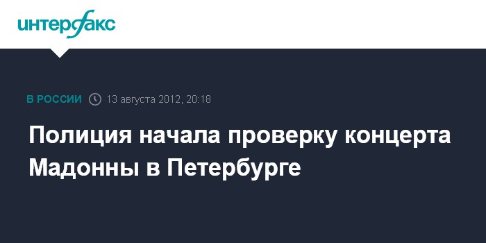 Санкт-Петербург. 13 августа. INTERFAX>RU - Полиция Петербурга приступила к проверке возможного нарушения закона о пропаганде гомосексуализма на концерте Мадонны 9 августа, сообщили "Интерфаксу" в понедельник в главном управлении МВД по северной столице.