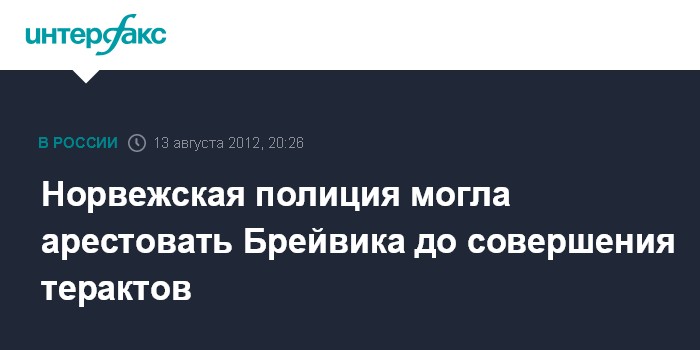 Осло. 13 августа. INTERFAX.RU - Норвежская полиция могла предотвратить теракт в центральной части Осло и поймать террориста Андерса Брейвика быстрее, чем это было сделано, говорится в докладе по результатам независимого расследования действий полиции.