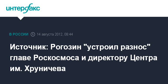 Источник: Рогозин "устроил разнос" главе Роскосмоса и директору Центра им. Хруничева