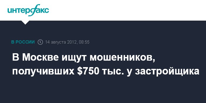 В Москве ищут мошенников, получивших $750 тыс. у застройщика