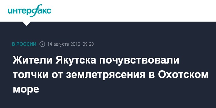 Якутск. 14 августа. INTERFAX.RU - Толчки от землетрясения в Охотском море ощущались в Якутске, сообщает корреспондент агентства " Интерфакс - Дальний Восток".