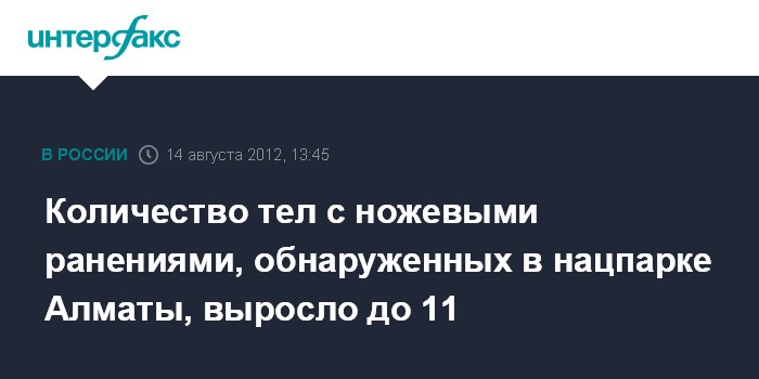 Астана. 14 августа. INTERFAX.RU - Количество тел, обнаруженных в Иле-Алатауском национальном парке в Алматинской области, возросло до 11-ти.