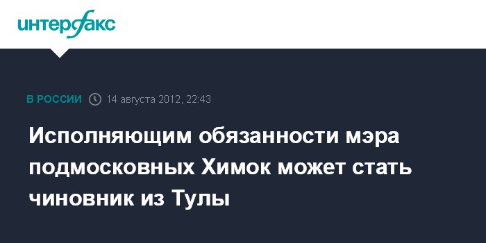 "Интерфакс" пока не располагает комментариями по поводу этой информации со стороны официальных представителей администрации Тульской области, а также администрации Московской области и администрации Химок.