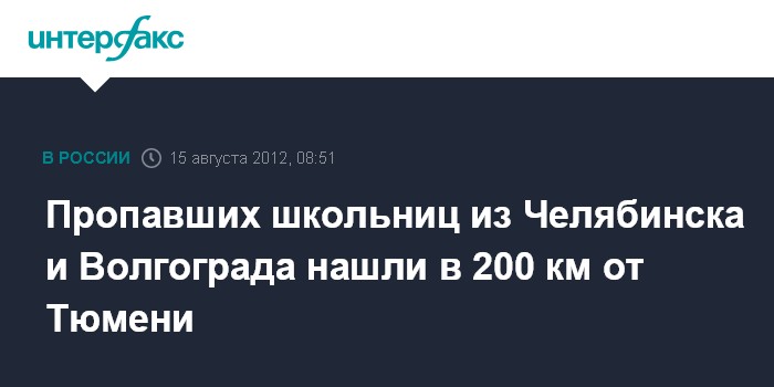 По ее словам, девушек нашли вечером во вторник в 200 км от Тюмени. Пропавшие здоровы, никто их не удерживал.
