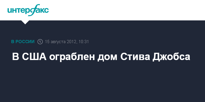 Вашингтон. 15 августа. INTERFAX.RU - Дом в американском штате Калифорния, принадлежавший скончавшемуся в октябре 2011 года бывшему главе компании Apple Стиву Джобсу, ограблен, сообщает американская газета The Wall Street Journal.