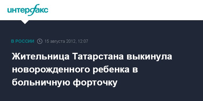 Казань. 15 августа. INTERFAX.RU - В Татарстане расследуют убийство новорожденного малыша. В преступлении подозревается его мать - жительница села Шереметьевка Нижнекамского района Елена Венкова.