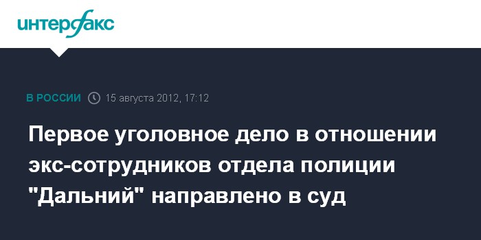 Первое уголовное дело в отношении экс-сотрудников отдела полиции "Дальний" направлено в суд