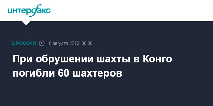 Лондон. 16 августа. INTERFAX.RU - Около 60 шахтеров погибли на северо-востоке Демократической республики Конго, сообщает BBC.