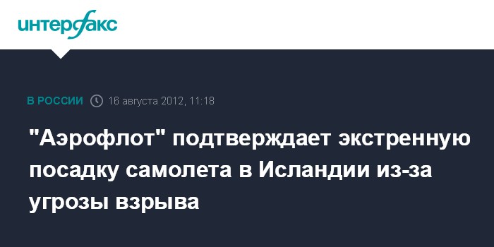 Москва. 16 августа. INTERFAX.RU - "Аэрофлот" подтверждает экстренную посадку в Исландии самолета, летевшего из Нью-Йорка в Москву, сообщил "Интерфаксу" официальный представитель компании.