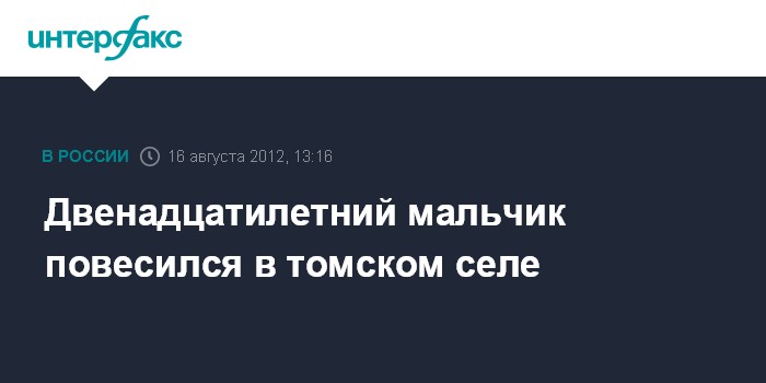 Томск. 16 августа. INTERFAX.RU - Следственные органы выясняют обстоятельства самоубийства 12-летнего мальчика в селе Зырянское Томской области, сообщает пресс-служба следственного управления СКР по региону в четверг.