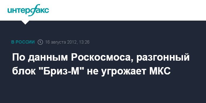 По данным Роскосмоса, разгонный блок "Бриз-М" не угрожает МКС