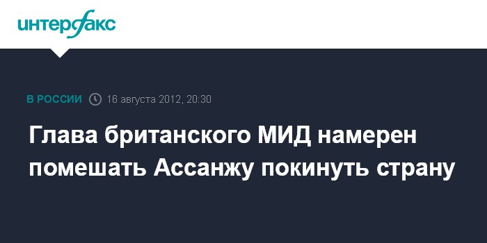 Лондон. 16 августа. INTERFAX.RU - Британские власти не дадут основателю WikiLeaks Джулиану Ассанжу покинуть страну, заявил в четверг глава МИД Великобритании Уильям Хейг.
