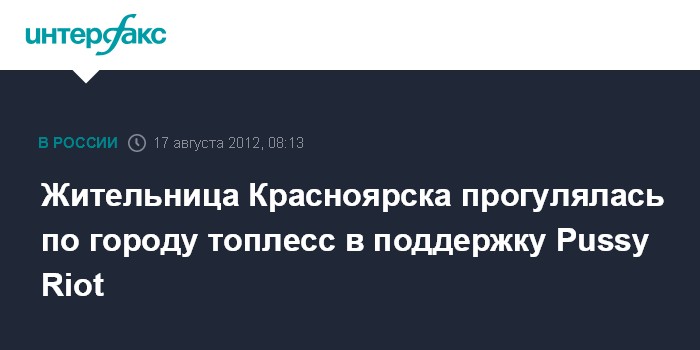 Жительница Красноярска прогулялась по городу топлесс в поддержку Pussy Riot