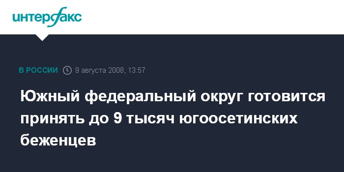Москва. 9 августа. INTERFAX.RU - Девять субъектов Федерации из Южного федерального округа России выразили готовность принять до 9 тыс. беженцев из Южной Осетии.