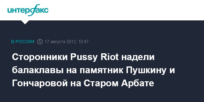 Сторонники Pussy Riot надели балаклавы на памятник Пушкину и Гончаровой на Старом Арбате