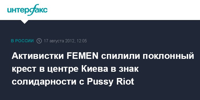 Киев. 17 августа. INTERFAX.RU - Активистки женского движения FEMEN спилили бензопилой и повалили поклонный крест в центре Киева недалеко от Международного центра культуры и искусств (Октябрьский дворец).