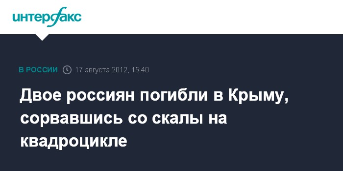 Симферополь. 17 августа. INTERFAX.RU - В Черноморском районе Крыма в результате падения со скалы квадроцикла погибли двое россиян.