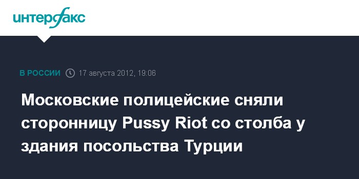 Московские полицейские сняли сторонницу Pussy Riot со столба у здания посольства Турции