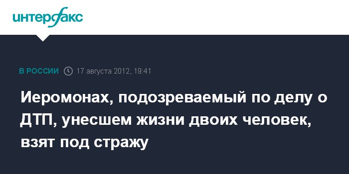 Иеромонах, подозреваемый по делу о ДТП, унесшем жизни двоих человек, взят под стражу