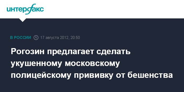 Рогозин предлагает сделать укушенному московскому полицейскому прививку от бешенства