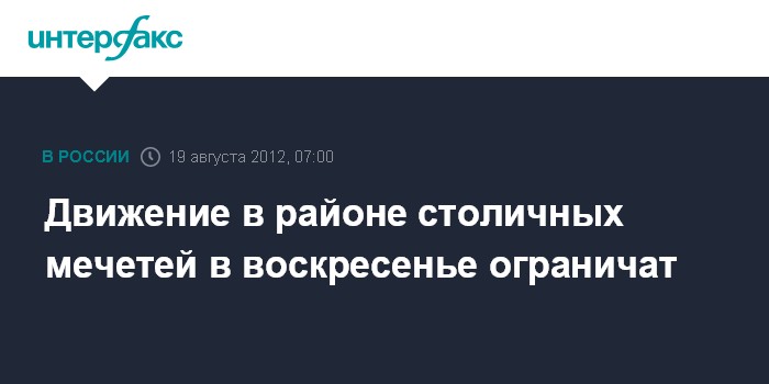 "19 августа 2012 года в мечетях города Москвы состоятся мероприятия одного из главных мусульманских религиозных праздников - Ураза-байрама. Движение автотранспорта, в том числе и общественного, будет ограничено с 0.30 часов и до окончания мероприятия на улицах Дурова, Гиляровского, Мещанская, Щепкина, Большая Татарская и Выползову переулку", - сказал представитель ГИБДД.