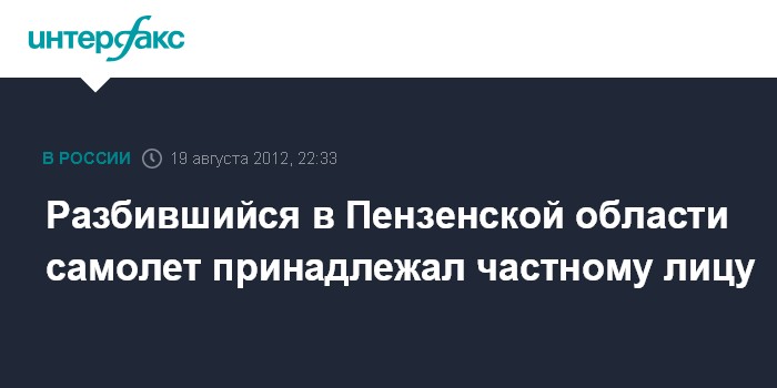 Разбившийся в Пензенской области самолет принадлежал частному лицу
