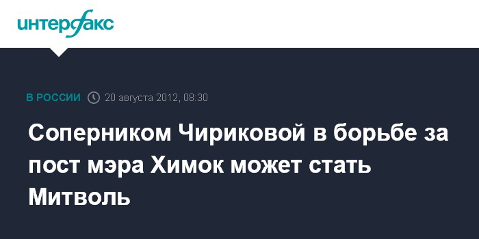Соперником Чириковой в борьбе за пост мэра Химок может стать Митволь
