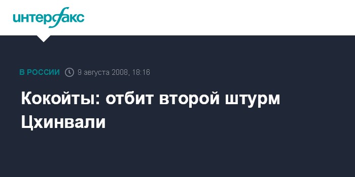 Москва. 9 августа. INTERFAX.RU - Президент Южной Осетии Эдуард Кокойты заявил, что грузинские войска в субботу днем предприняли попытку второго штурма Цхинвали, но он был отбит.