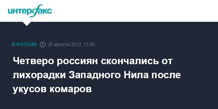 Четверо россиян скончались от лихорадки Западного Нила после укусов комаров