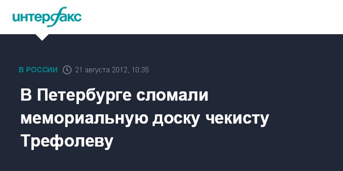 В Петербурге сломали мемориальную доску чекисту Трефолеву