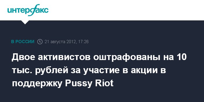 Двое активистов оштрафованы на 10 тыс. рублей за участие в акции в поддержку Pussy Riot