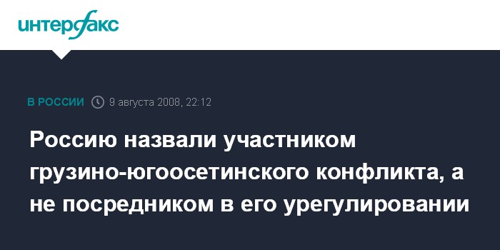 "Россия в настоящий момент является стороной конфликта, не посредником, и это должно отражаться в момент, когда начнутся переговоры о прекращении огня и перемирии", - сказал А.Штубб на пресс-конференции в субботу в Хельсинки. Характеризуя нынешнюю ситуацию в зоне конфликта в Грузии, он назвал ее "войной", отметив: "Нет причин называть это как либо по-иному".