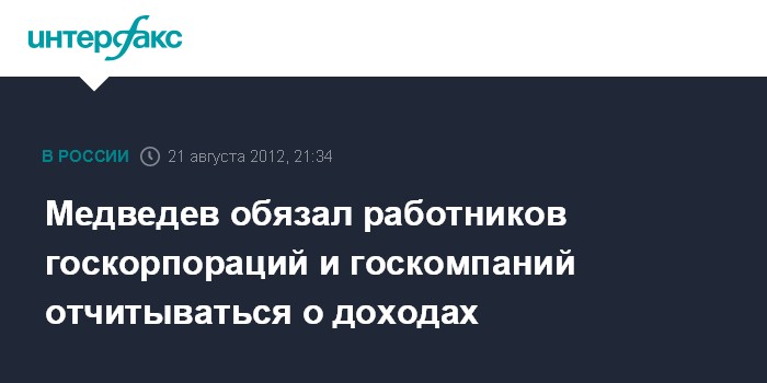 Медведев обязал работников госкорпораций и госкомпаний отчитываться о доходах