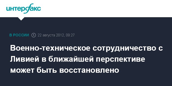 Москва. 22 августа. INTERFAX.RU - В Федеральной службе по военно-техническому сотрудничеству (ФСВТС России) не исключают, что ВТС с Ливией в ближайшей перспективе может быть восстановлено.
