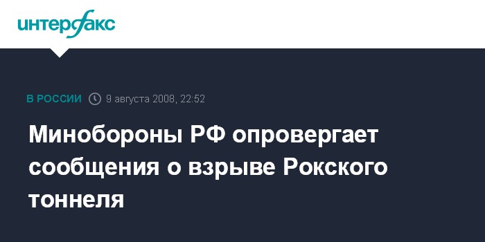 Минобороны РФ опровергает сообщения о взрыве Рокского тоннеля