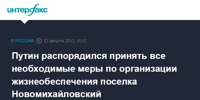 Путин распорядился принять все необходимые меры по организации жизнеобеспечения поселка Новомихайловский