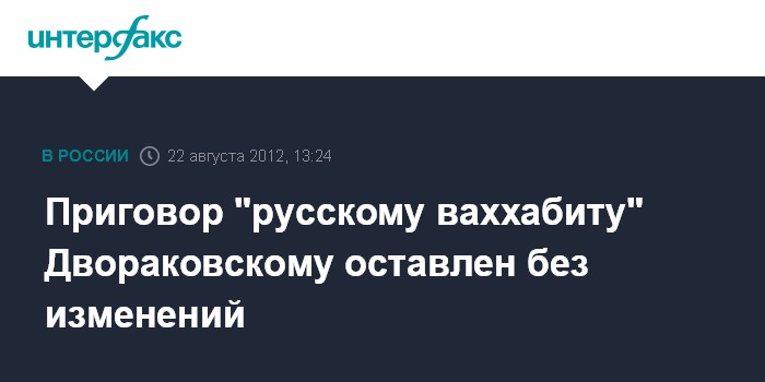 Москва. 22 августа. INTERFAX.RU - Верховный суд России оставил без изменений приговор в отношении жителей Ставропольского края 24-летнего Виктора Двораковского, которого называют "русским вахаббитом", и 25-летнего Владимира Скирко.