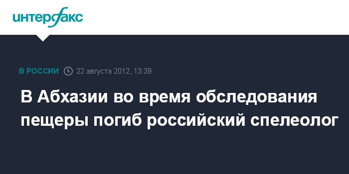 Сухуми. 22 августа. INTERFAX.RU - В результате несчастного случая в Гагрском районе Абхазии погиб спелеолог из Москвы.