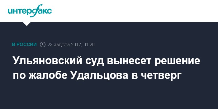 Ульяновск. 23 августа. ИНТЕРФАКС-ПОВОЛЖЬЕ - Ленинский районный суд Ульяновска планирует вынести решение по жалобе оппозиционера Сергея Удальцова на приговор по делу об избиении местной студентки в четверг в 15:00.