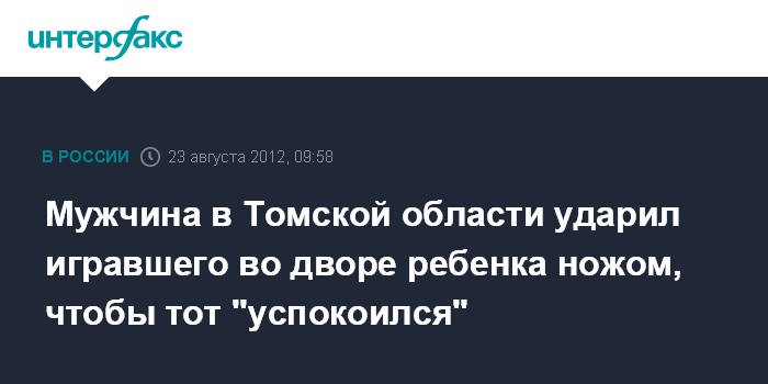 Мужчина в Томской области ударил игравшего во дворе ребенка ножом, чтобы тот "успокоился"