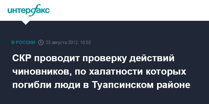Москва. 23 августа. INTERFAX.RU - Следственные органы СК РФ по Краснодарскому краю приступили к доследственной проверке действий чиновников Туапсинского района, не принявших достаточных мер по предупреждению наводнения, в котором погибли люди, сообщили в СК РФ.