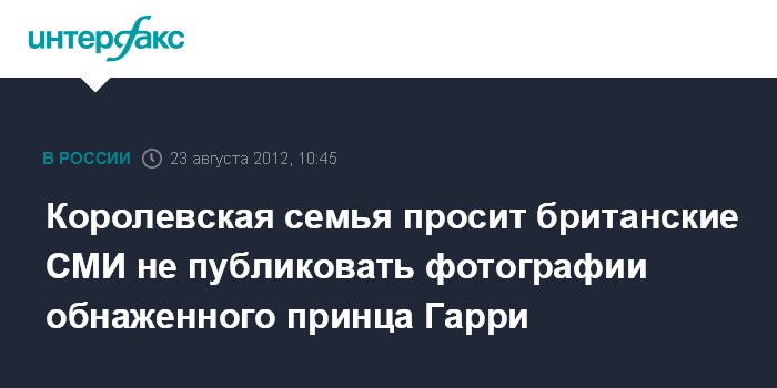 Лондон. 23 августа. INTERFAX.RU - Королевская семья Великобритании просит британские СМИ воздержаться от публикации откровенных фотографий принца Гарри на отдыхе в Лас-Вегасе, сообщили в четверг в резиденции королевской семьи.