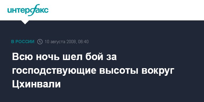 Москва. 10 августа. INTERFAX.RU - Всю прошедшую ночь в Южной Осетии шел бой за господствующие над Цхинвали Присские высоты, сообщает сайт комитета информации и печати непризнанной республики. В сообщении отмечается, что "грузинские военные подразделения продолжили артиллерийский обстрел города Цхинвал и ряда населенных пунктов Южной Осетии. Город практически полностью разрушен".