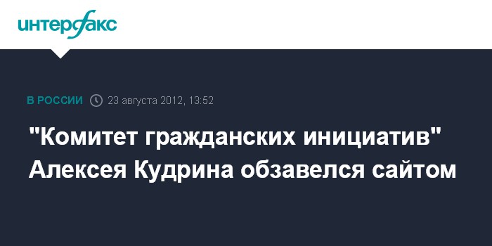 Москва. 23 августа. INTERFAX.RU - Свой интернет-сайт появился у "Комитета гражданских инициатив" (КГИ), который возглавляет бывший министр финансов РФ, а ныне общественный деятель Алексей Кудрин.