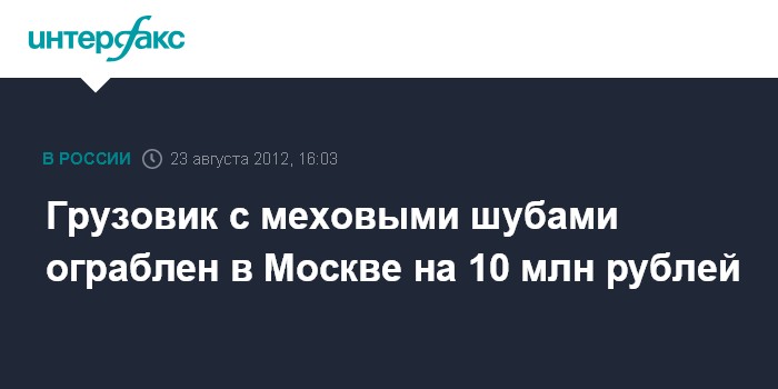 Грузовик с меховыми шубами ограблен в Москве на 10 млн рублей